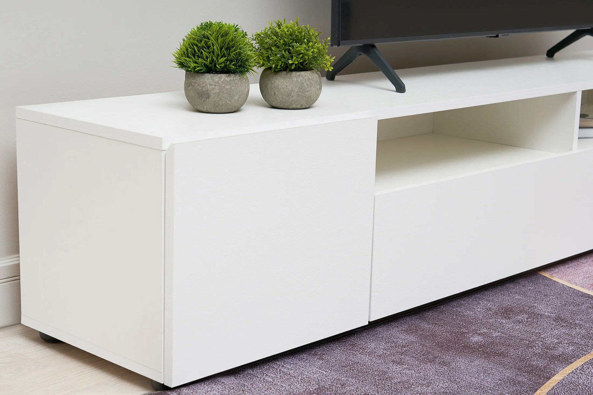 Тумба под ТВ Нонтон Грейс белая текстурная 200.1х34.6х35.5 см