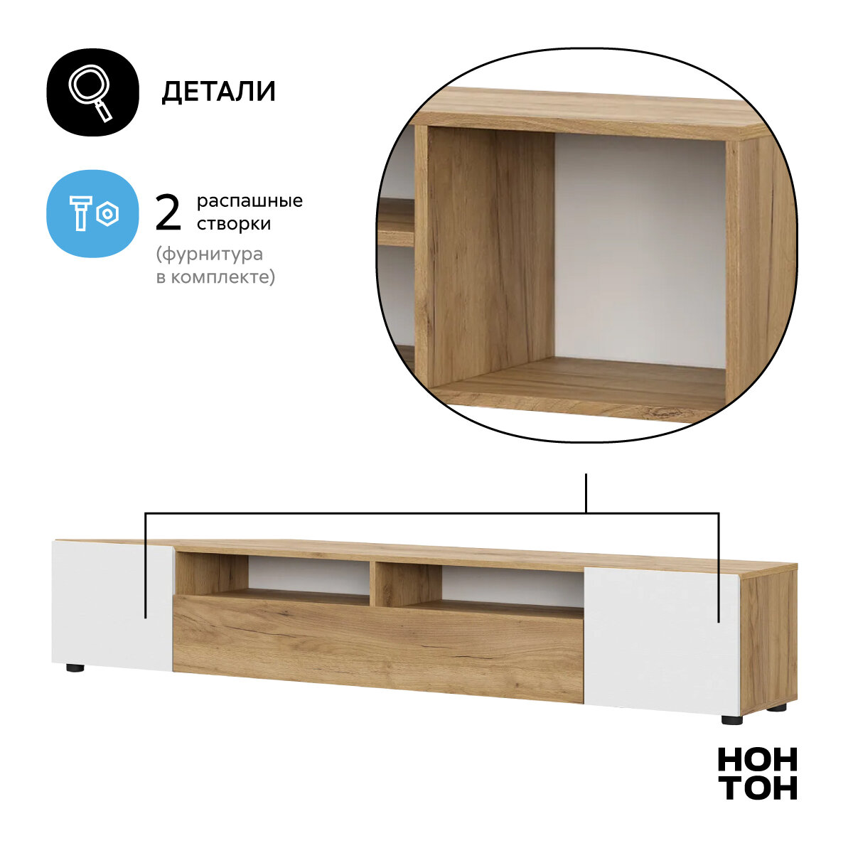 Тумба под телевизор Нонтон Грейс, дуб крафт золотой / белый, 200.1х34.6х35.5 см