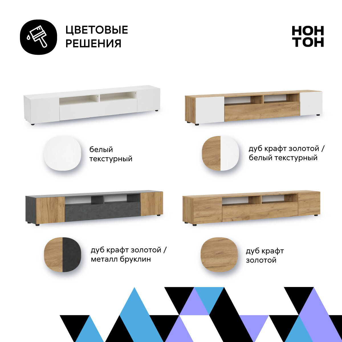 Тв тумба Нонтон Грейс белая текстурная 200.1х34.6х35.5 см