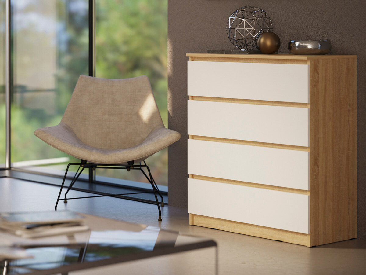 Комод для одежды в спальню Нонтон Челси, белый глянец / дуб сонома, 120х45х76.8 см