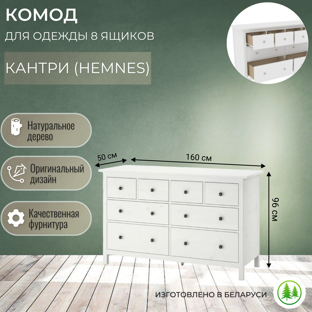 Комод "Кантри" с 8-ю ящиками, 50х160х96 интересное: