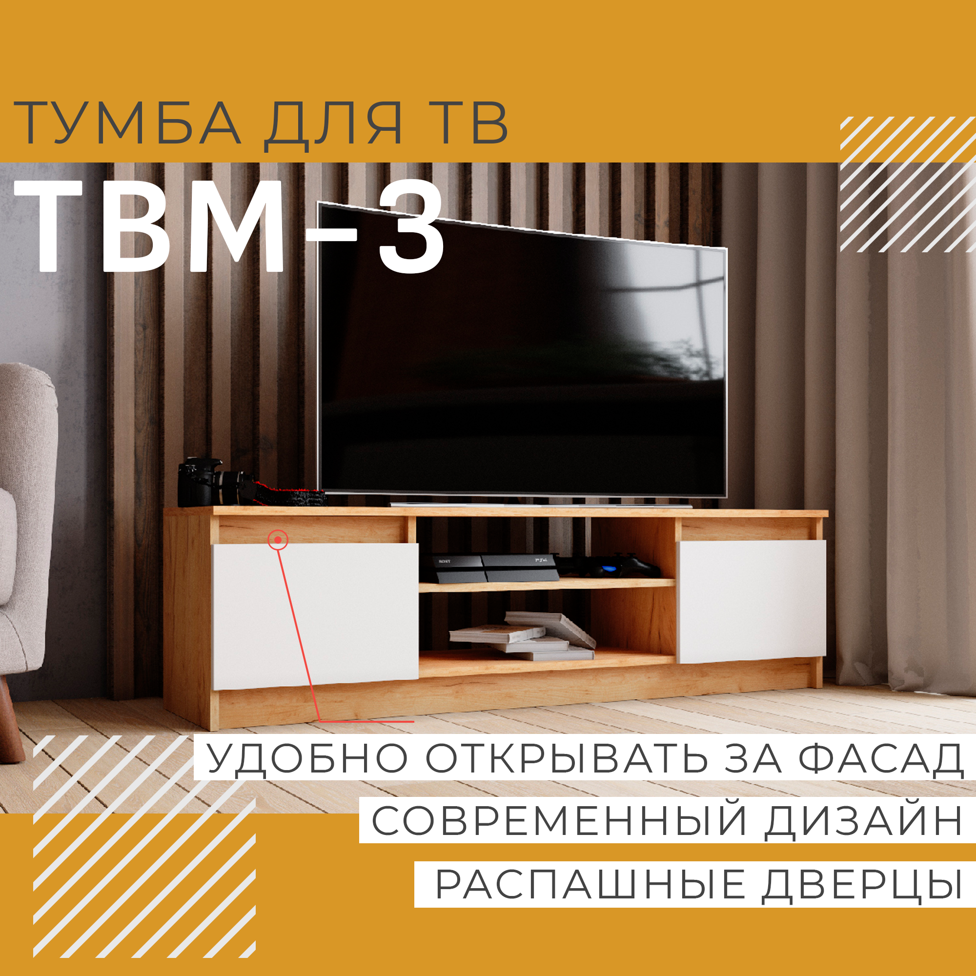 Тумба под телевизор, ТВМ-3, Дуб Крафт Золотой / Белый
