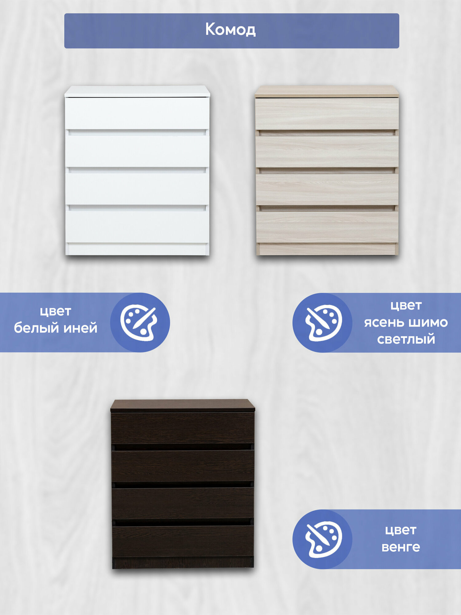 Комод деревянный с четырьмя ящиками №12 ясень шимо светлый/белый, Курскмебель