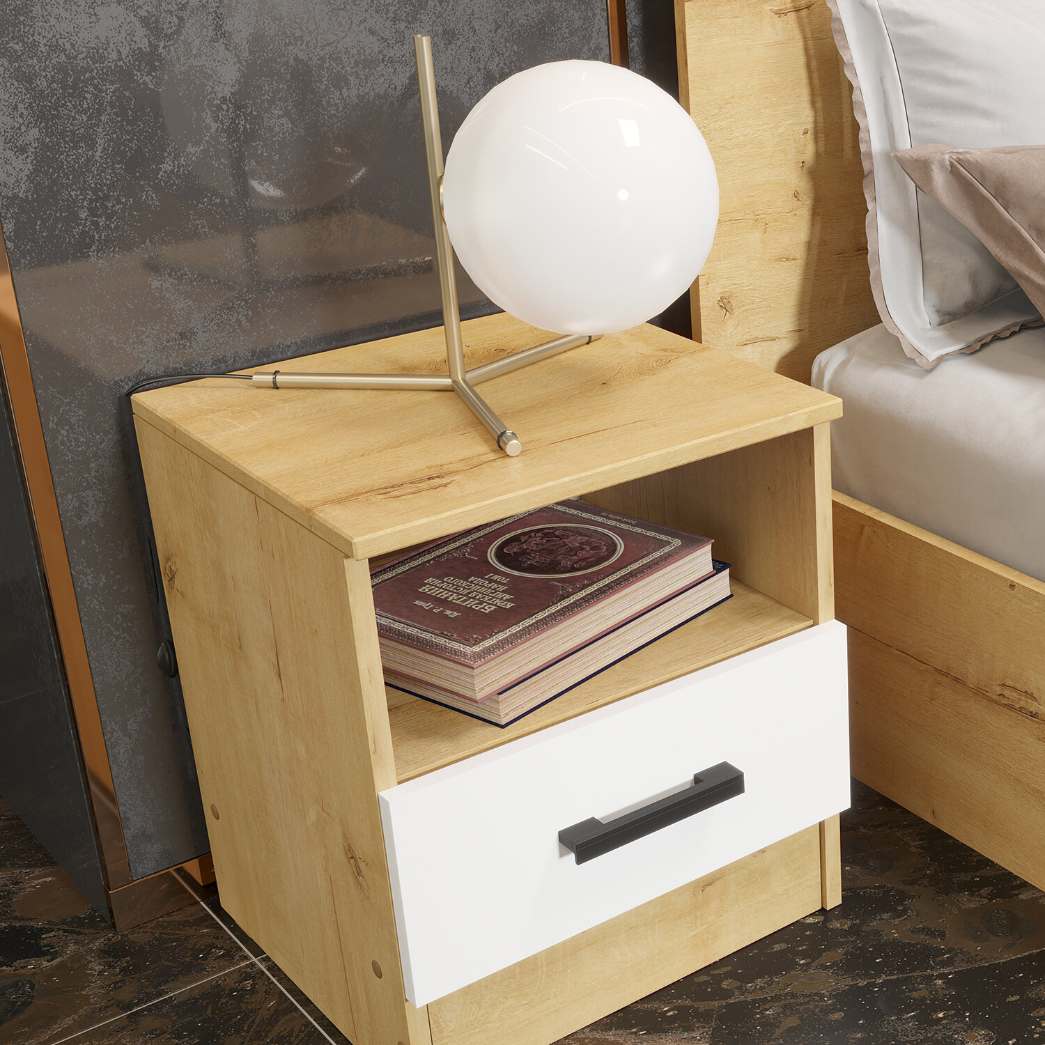 Тумба прикроватная ЭРА ЭКО Дуб вотан/Белый гладкий ПЭ7194