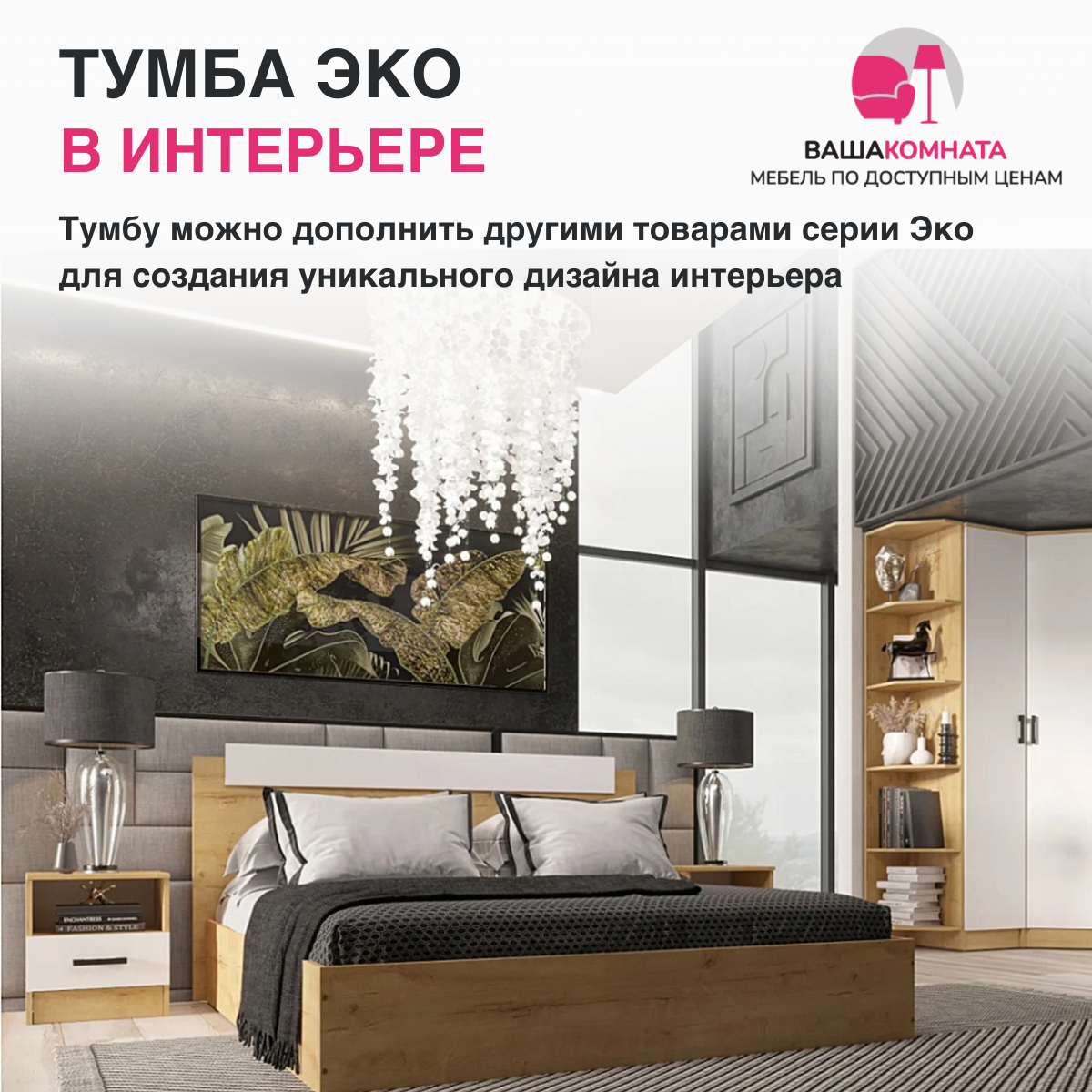 СохранитьТумба прикроватная Эко, Дуб вотан/Белый гладкий интересное: