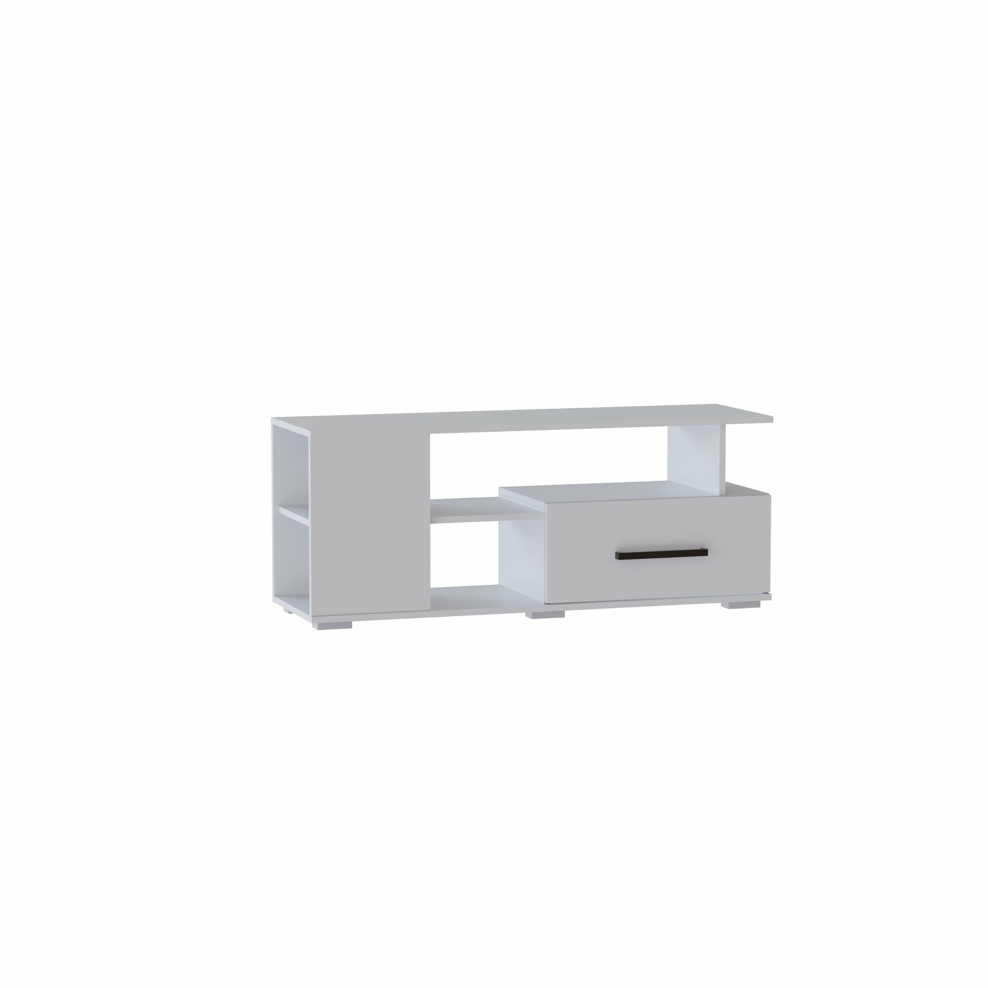 Тумба ТВ Парус-4 Белый с тиснением "Древесные поры" ЛДСП с полками, ящиком для гостиной, спальни, 490х1200х375, тэкс