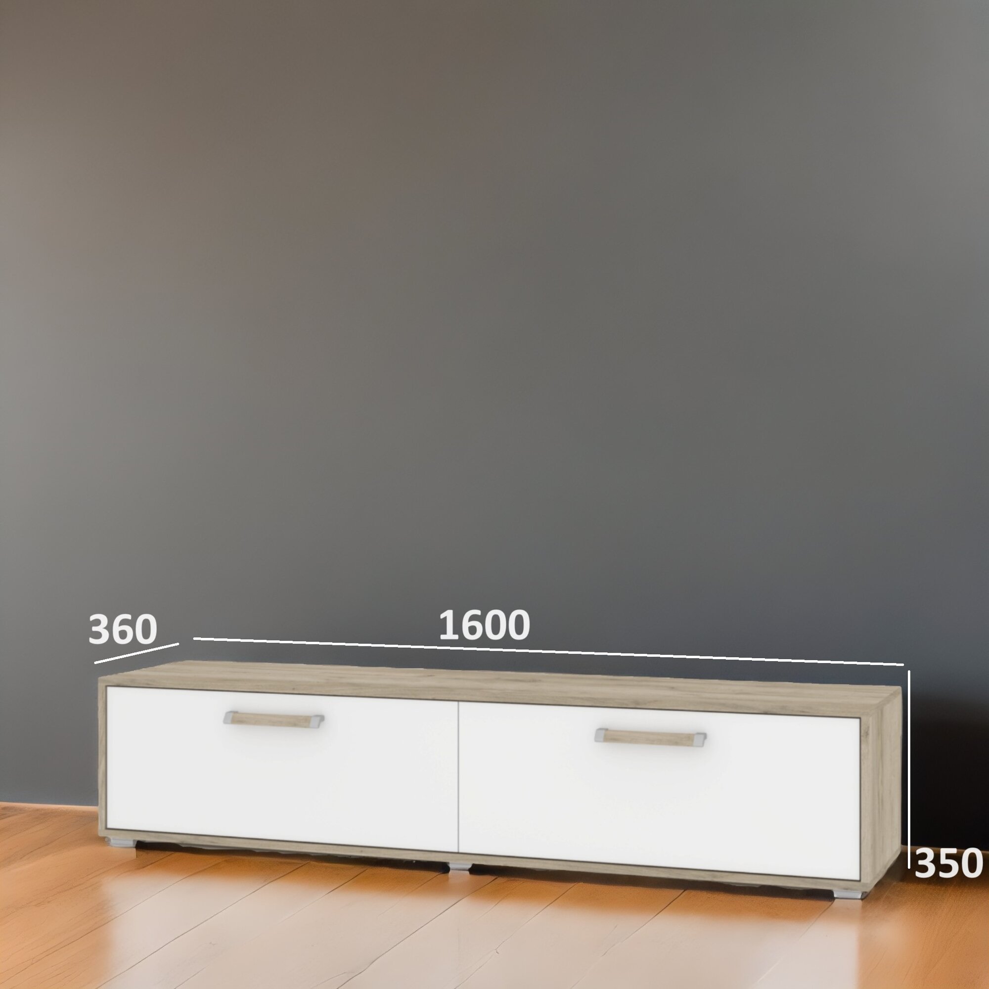 Купить Тумба для ТВ Виго, 2 створки, 160х36, высота 35 см, серый/белый, 2 ящика