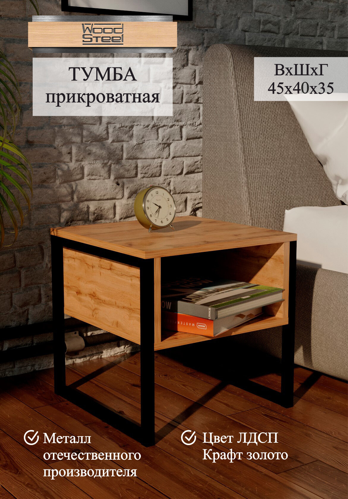 Прикроватная тумба в стиле Лофт "Chicago lite" 40x35x45 см. Чёрный интересное: