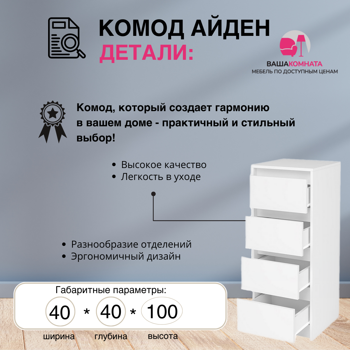 Комод "Айден" КМ06-400 - Белый ЛДСП