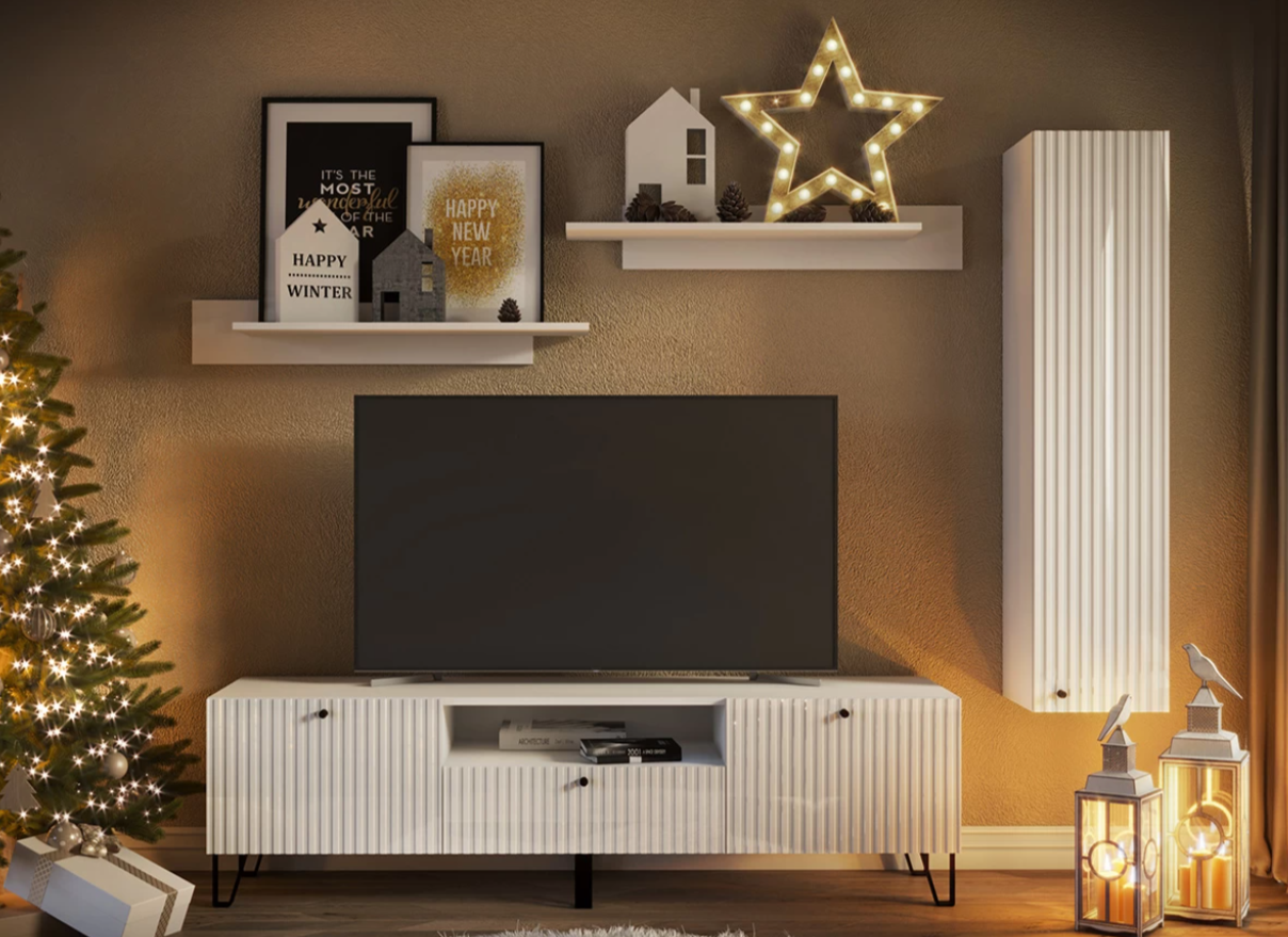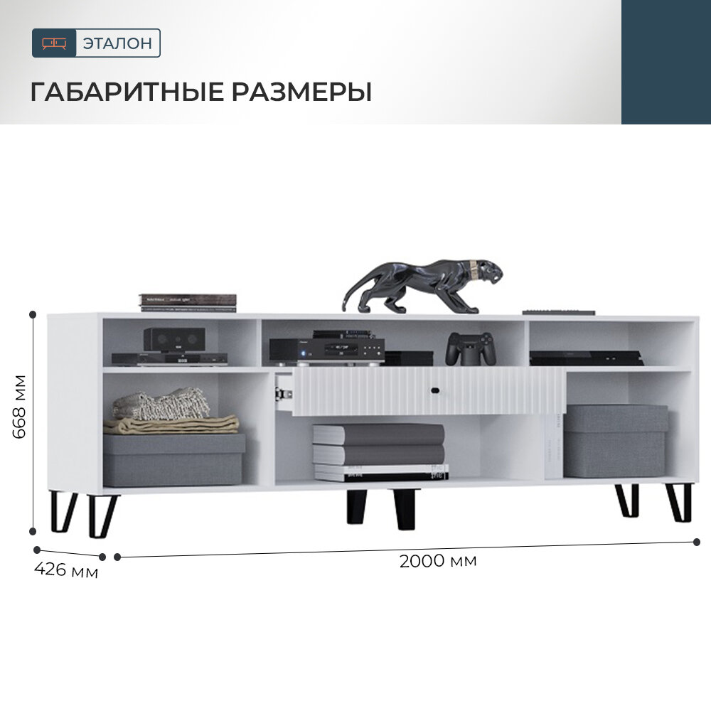 ТВ-тумба МИФ"Оливия" 160*46*44.2 МАЛАЯ Белый/Белый глянец, скандинавский стиль