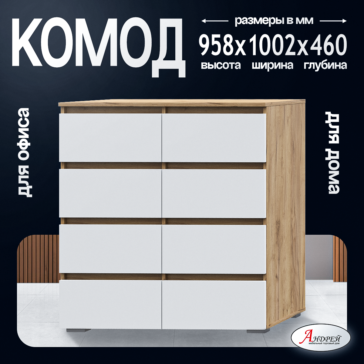 Комод Хелен КМ-04 Комод 8 ящиков (1002х958х460) Дуб крат золото - Белый