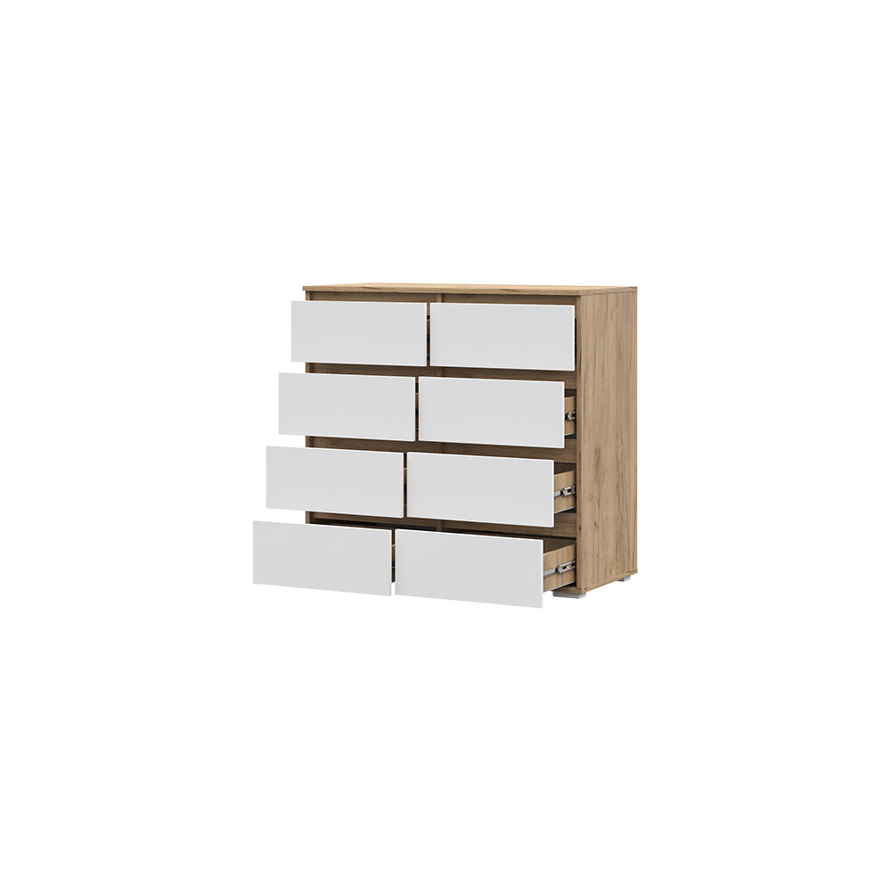 Купить Комод для одежды, восемь ящиков, КМ04 Хелен, Белый / Дуб Крафт Золотой