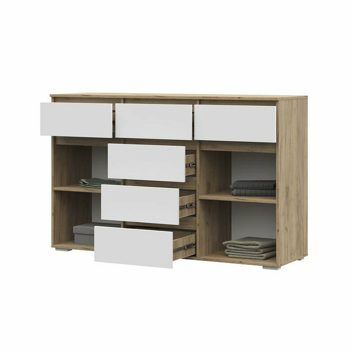 Купить Комод для одежды, шесть ящиков, КМ05 Хелен, Белый / Дуб Крафт Золотой