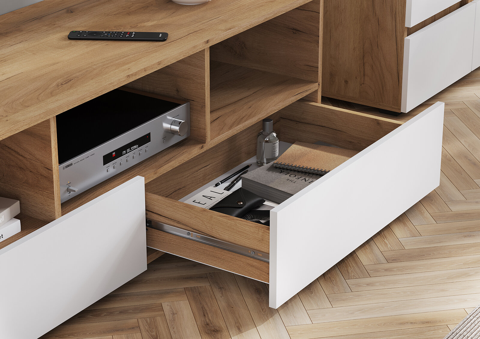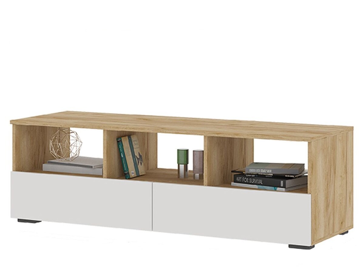 Тумба ТВ Хелен ТБ-02 (1,402х0,442х0,460) цвет Дуб крафт золото - Белый Стендмебель
