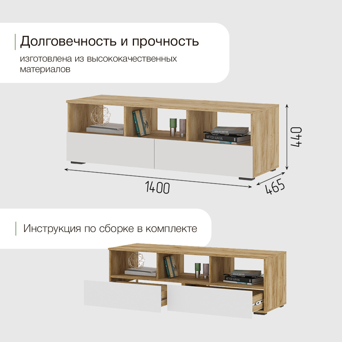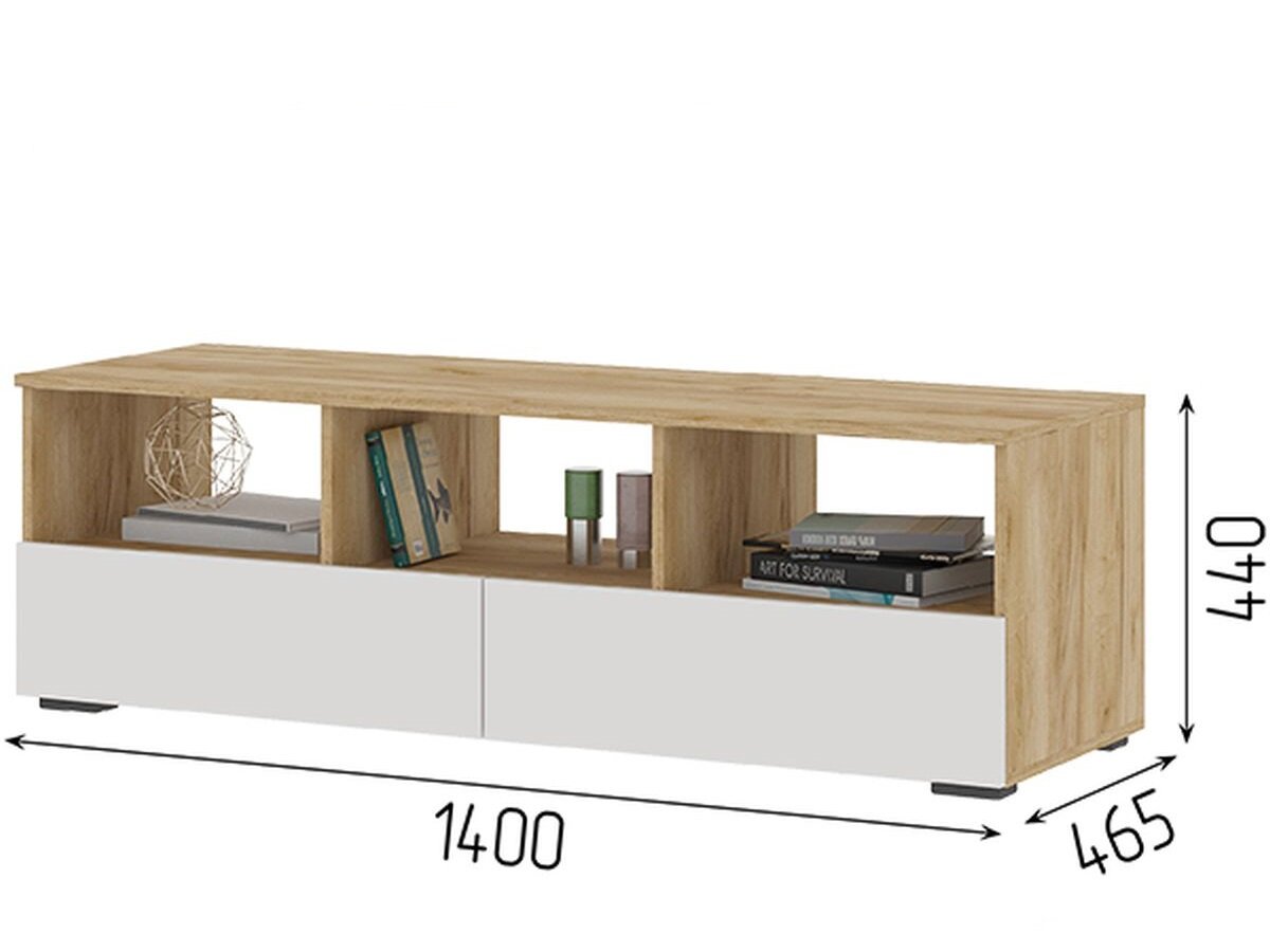 Тумба под телевизор ТВ «Хелен» ТБ 02, белый/дуб крафт золото (1400х465х440)