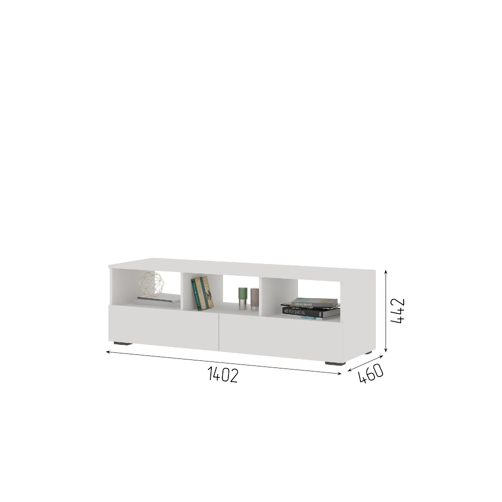 Тумба ТВ Хелен ТБ-02 (1,402х0,442х0,460) цвет Дуб крафт золото - Белый Стендмебель
