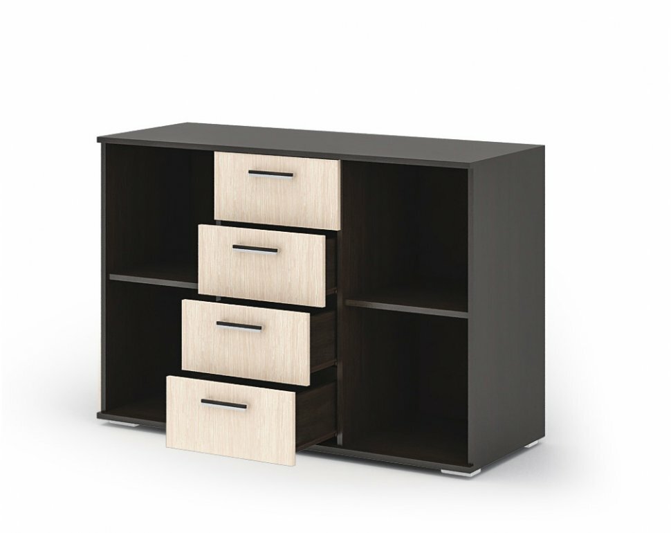Комод 4 ящика и 2 створки КМ 555М «Бася» (Шимо тёмный/Шимо светлый) CM
