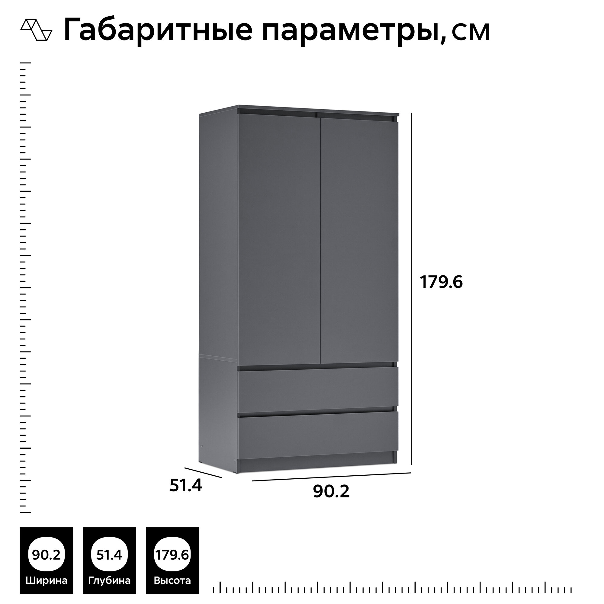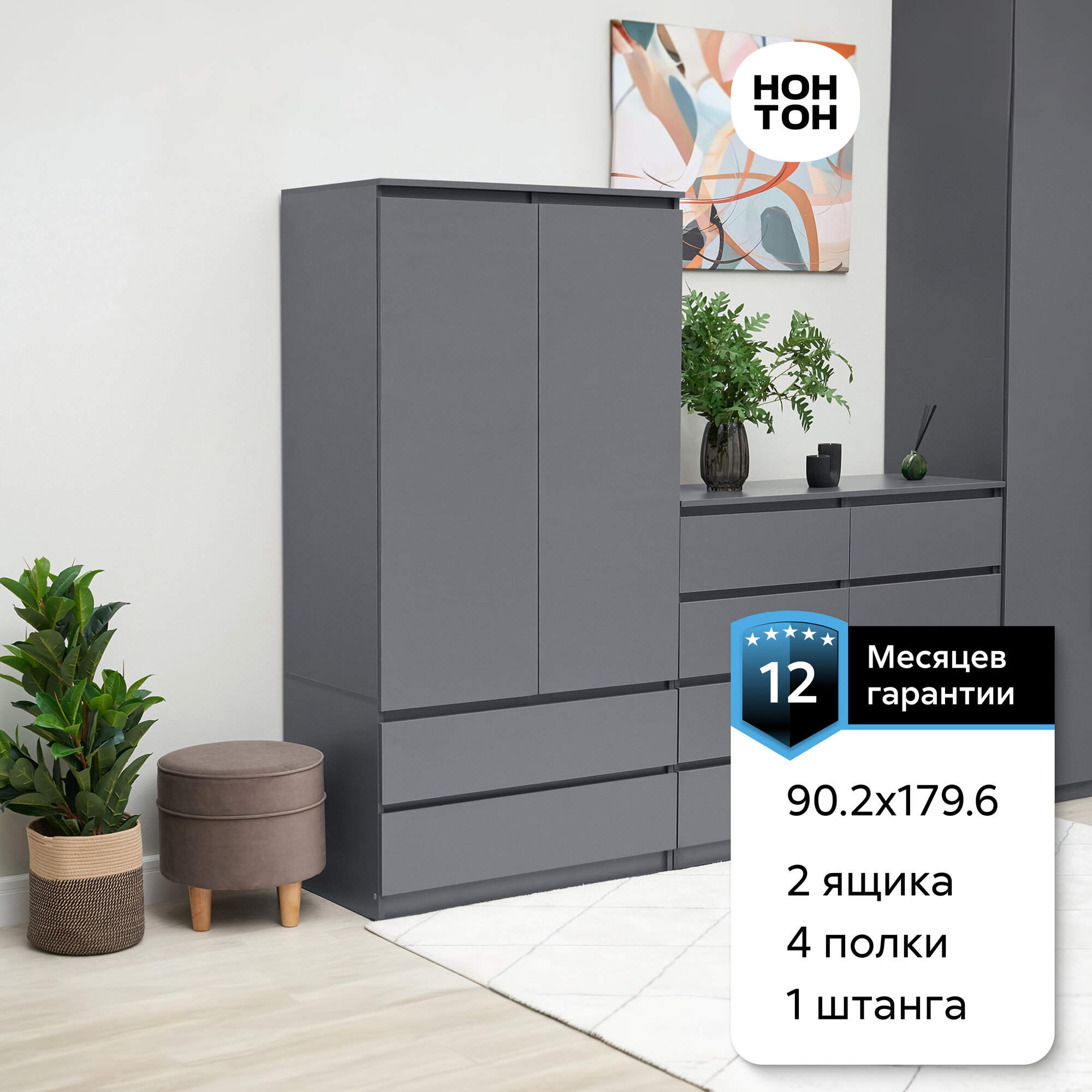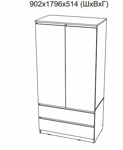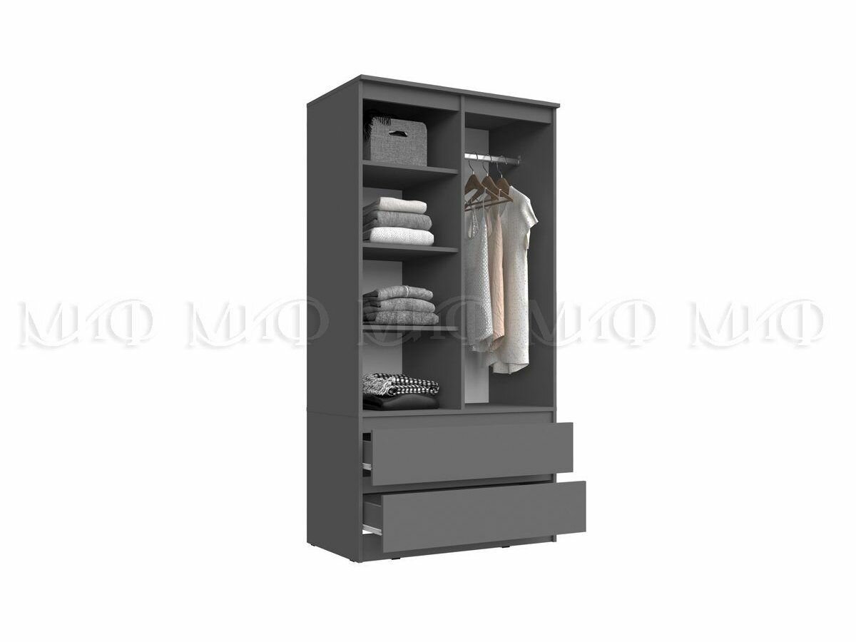 Шкаф 2-х дверный Миф Челси, 2 ящика, графит 90.2х51.4х179.6 см