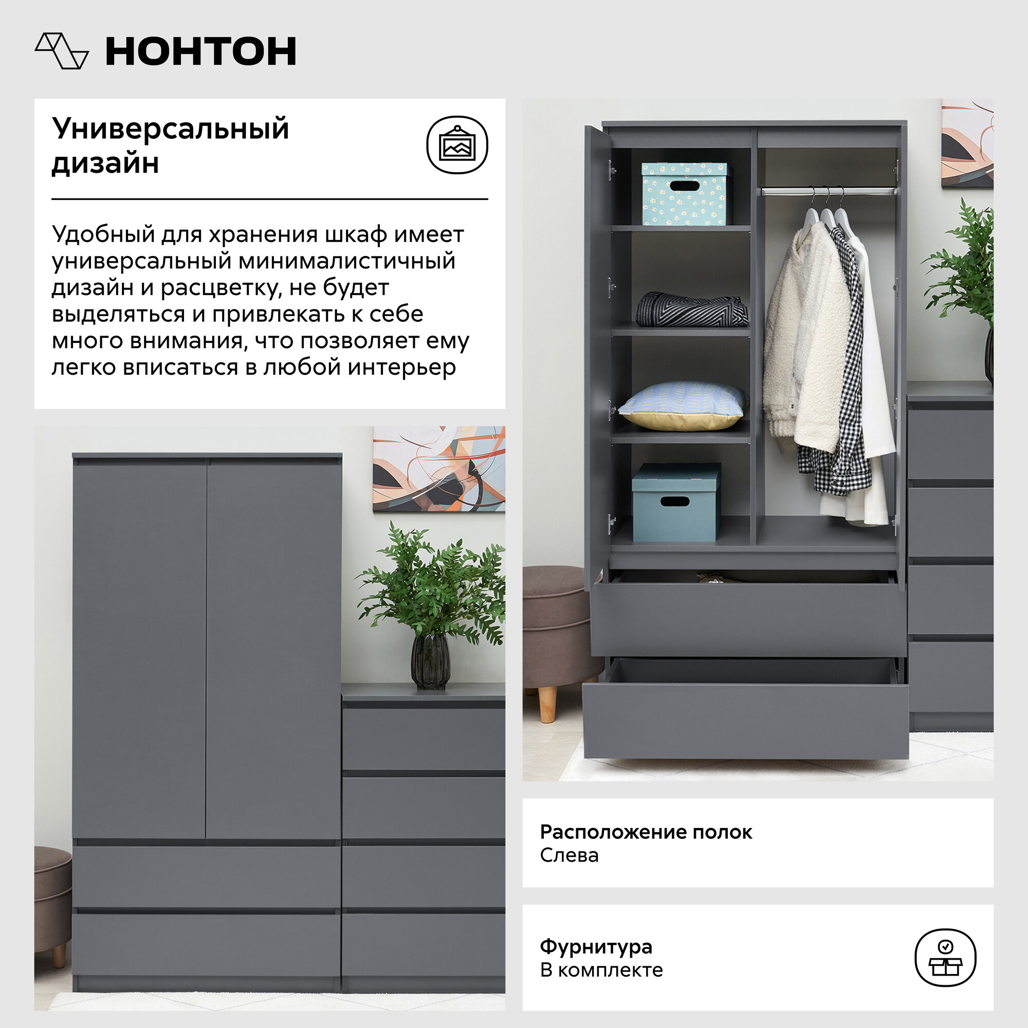Ниже Вы можете прочитать отзывы на Шкаф для одежды с ящиками Нонтон Челси графит 90 см, ознакомится с подробными характеристиками, посмотреть интересные обзоры и фотографии на Шкаф для одежды с ящиками Нонтон Челси графит 90 см.