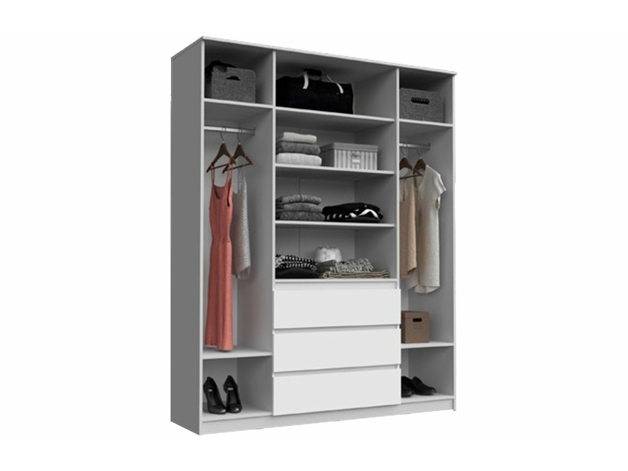 Купить Шкаф распашной Челси с ящиками 1600/Шкаф для одежды 4-х ств. Белый глянец, Белый