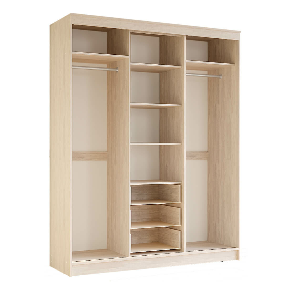 Шкаф-купе для одежды комбинированный БТС Мебель Маэстро с зеркалом и ящиками, цвет ясень белый