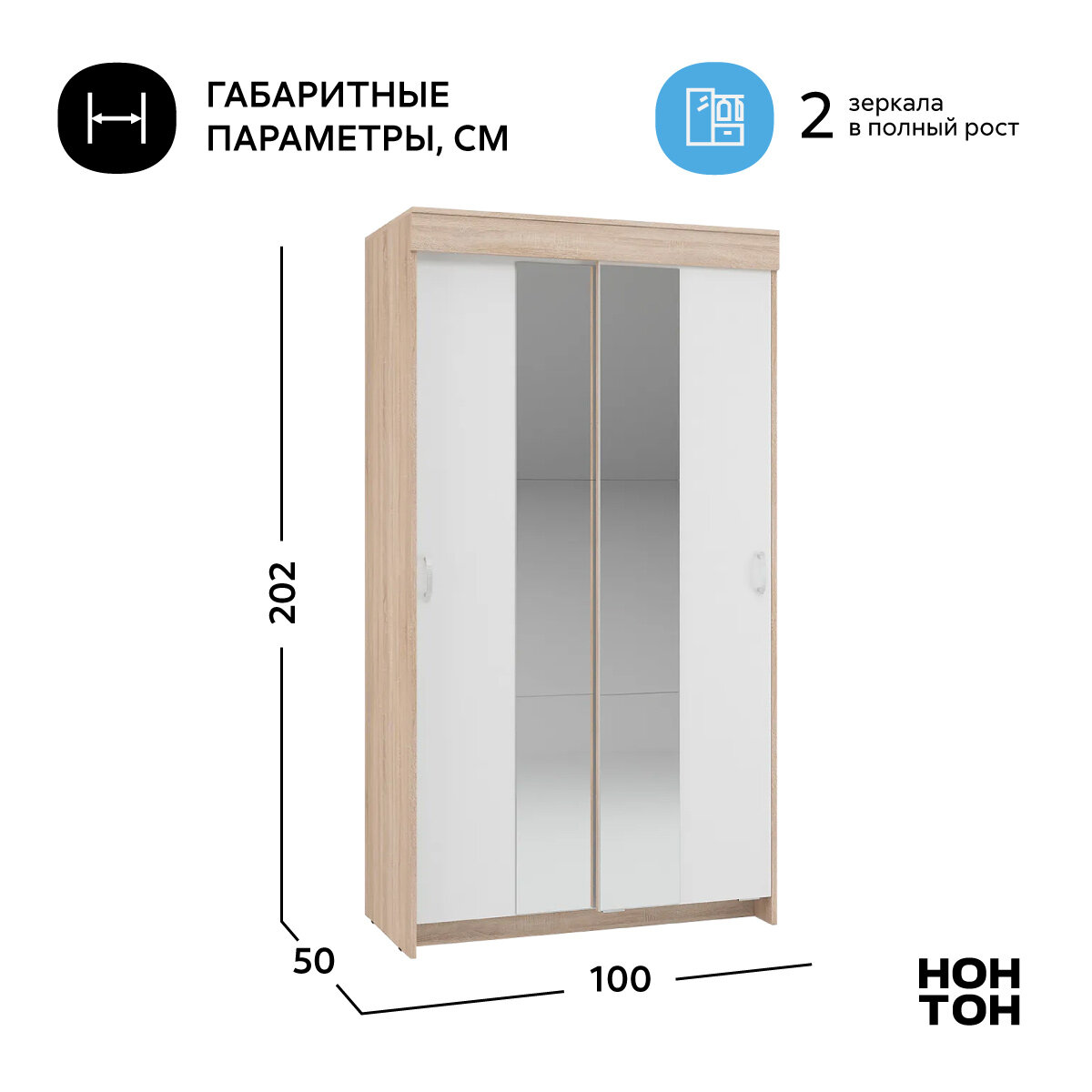 Купить Шкаф-купе для одежды Нонтон Бассо, 2 зеркала, дуб сонома / белый 100 см
