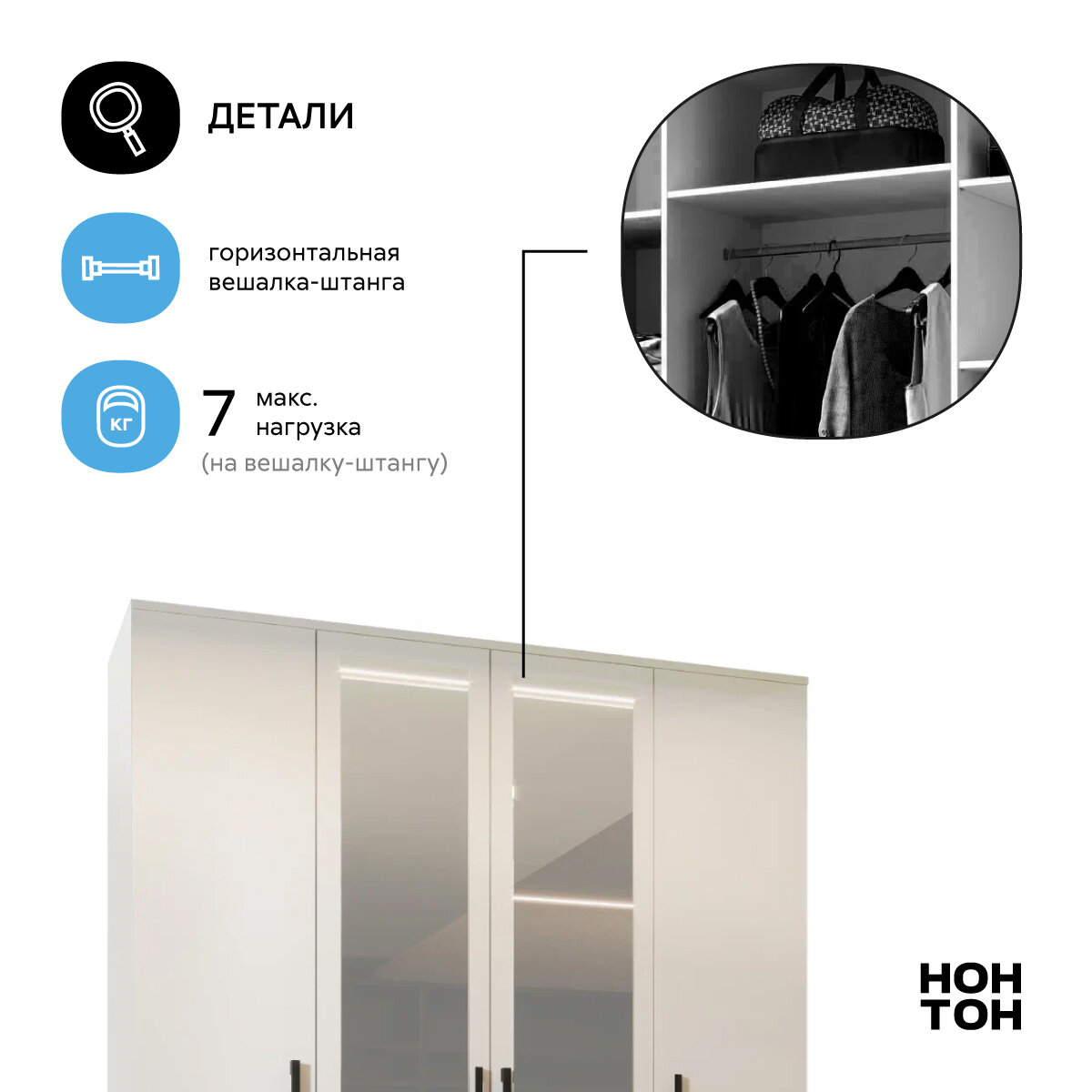 | Особенности | дверь со стеклом, доводчики, модульный, с зеркалом, штанга для вешалок |