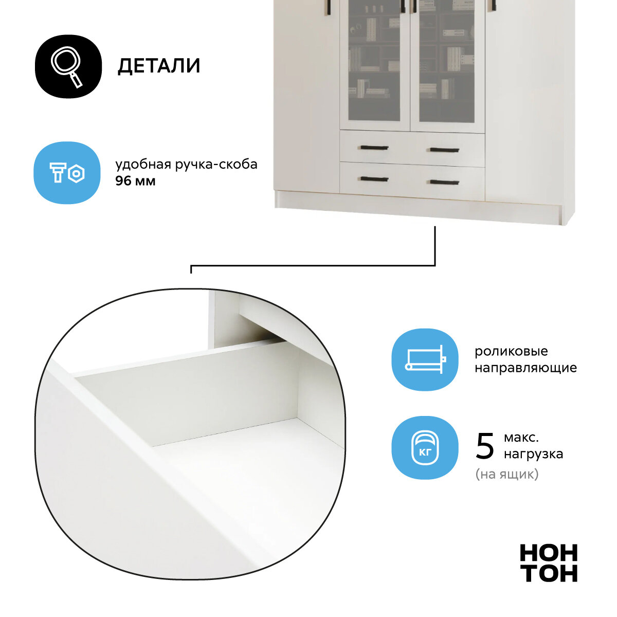Шкаф для одежды с зеркалом и ящиками Нонтон Квадро, белый, 160 см