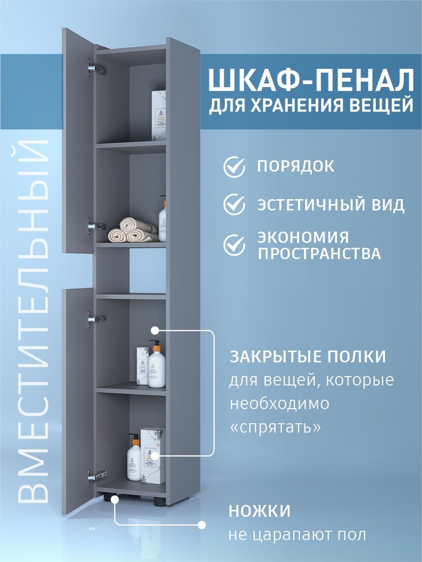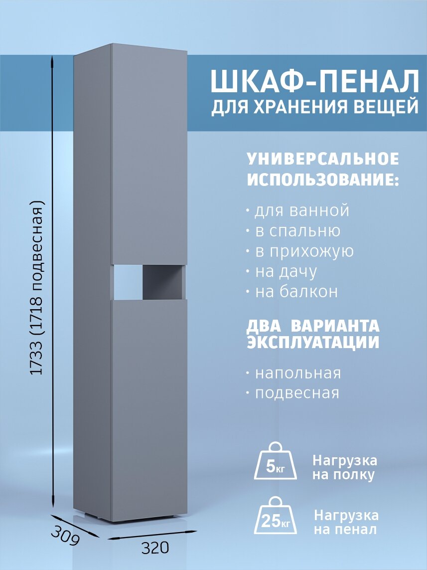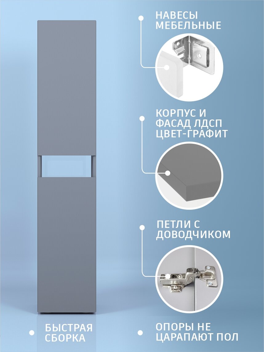 Купить Шкаф-пенал для ванной, детской, прихожей 30 x 32, высота 173см, графит