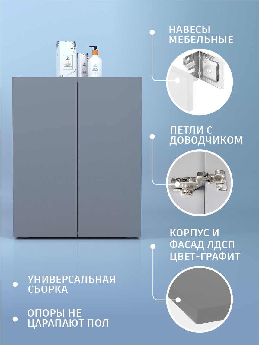 СохранитьШкаф тумба для ванной, спальни, прихожей напольный, подвесной 64x30x81 см, графит интересное: