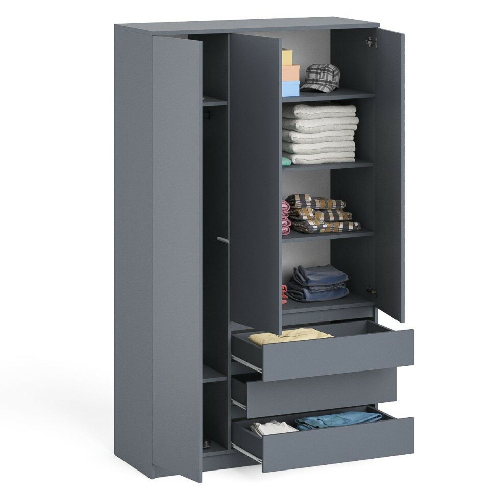 Шкаф распашной 3 створки МШ 1200.1 модульная система Мори ДСВ Графит 210х120.4х50.4см
