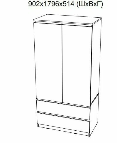 Шкаф 2-х створчатый Челси Белый/Шкаф распашной с ящиками 90.2 х 179.6 х 51.4 см.