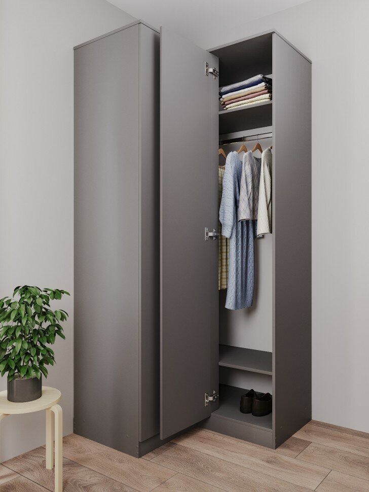 СохранитьШкаф распашной Челси угловой, прямой ЛДСП, Графит, 95х202.2х95 см интересное: