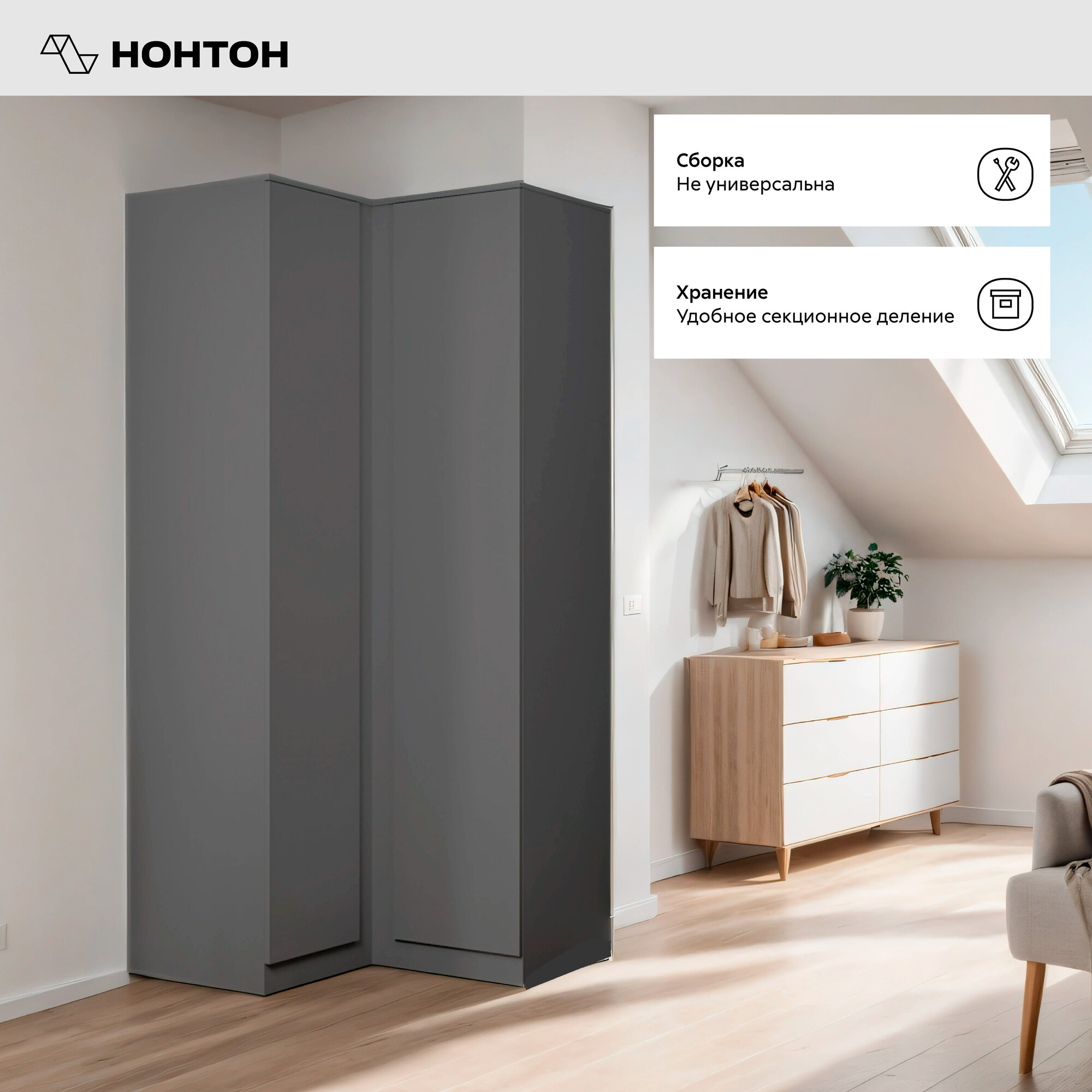 Шкаф угловой для одежды Нонтон Челси графит, 95 см