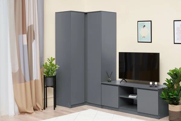 Шкаф угловой прямой Челси Графит/Графит