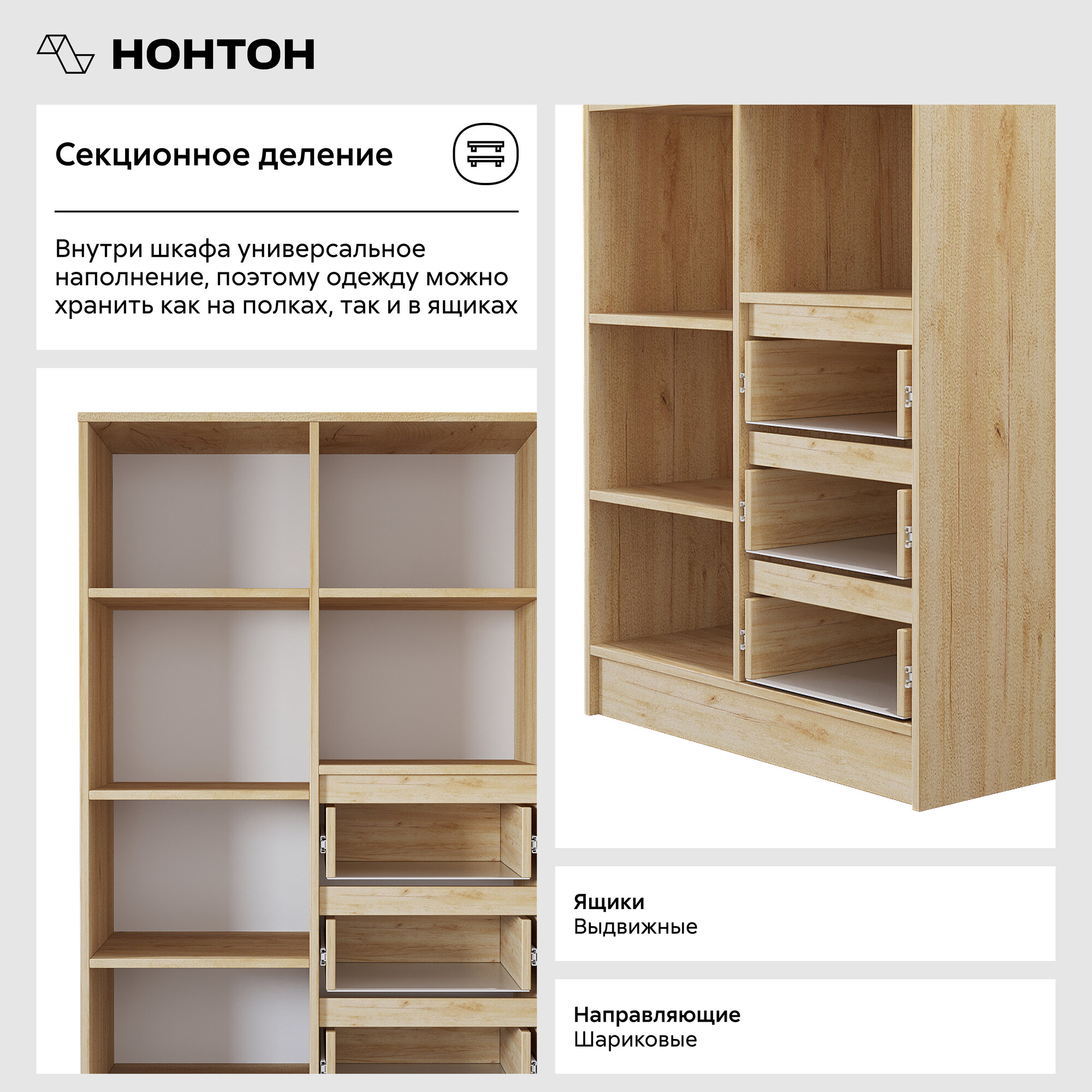 Шкаф для одежды распашной с ящиками Нонтон Челси, дуб сонома / белый глянец, 120 см