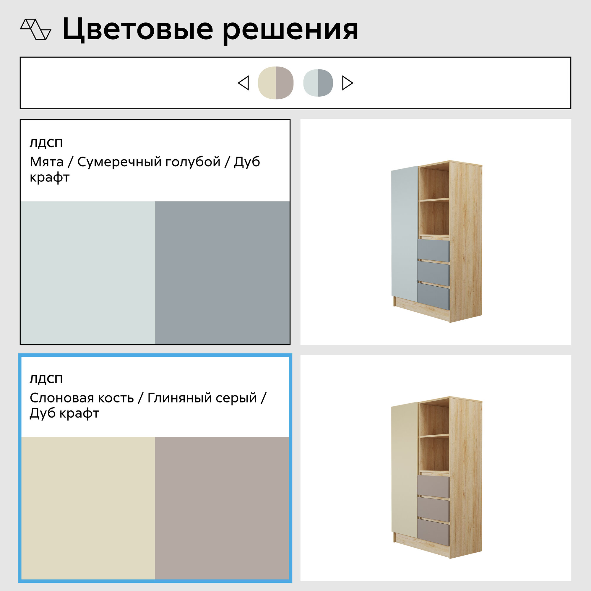 Шкаф двухстворчатый с 2-мя ящиками Челси Color Слоновая кость/Глиняный серый/Дуб крафт ЛДСП