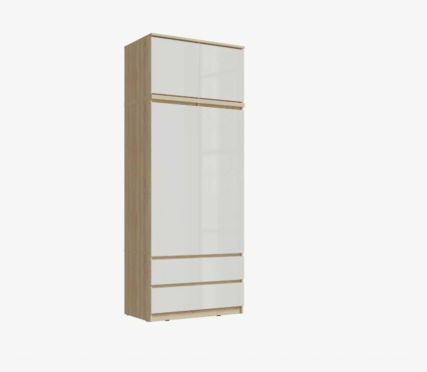 Купить Шкаф 2-х створчатый Челси распашной с ящиками и антресолью (902х2300х514) Белый глянец холодный/Дуб сонома