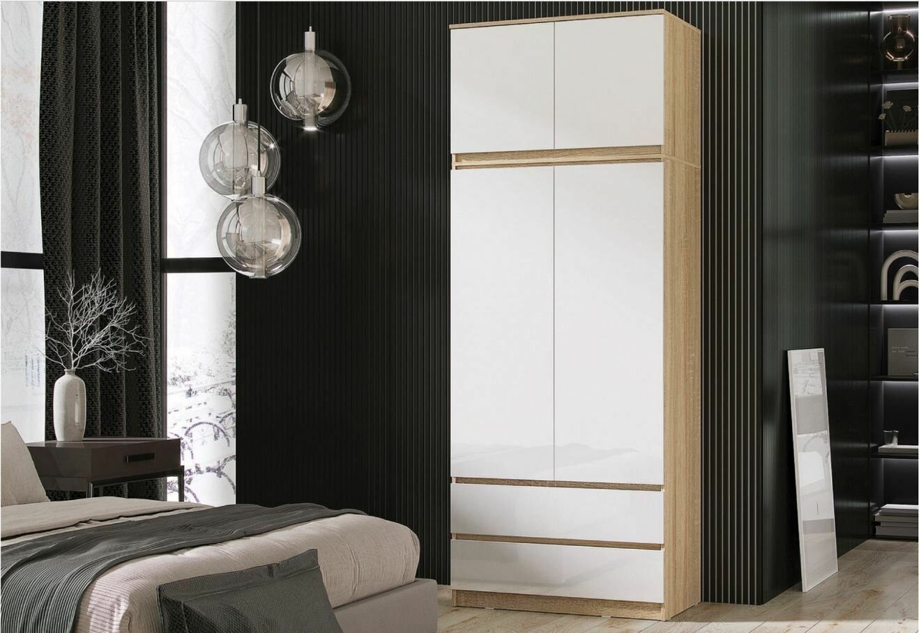 Шкаф для одежды Нонтон Челси, дуб сонома / белый глянец, 80 см