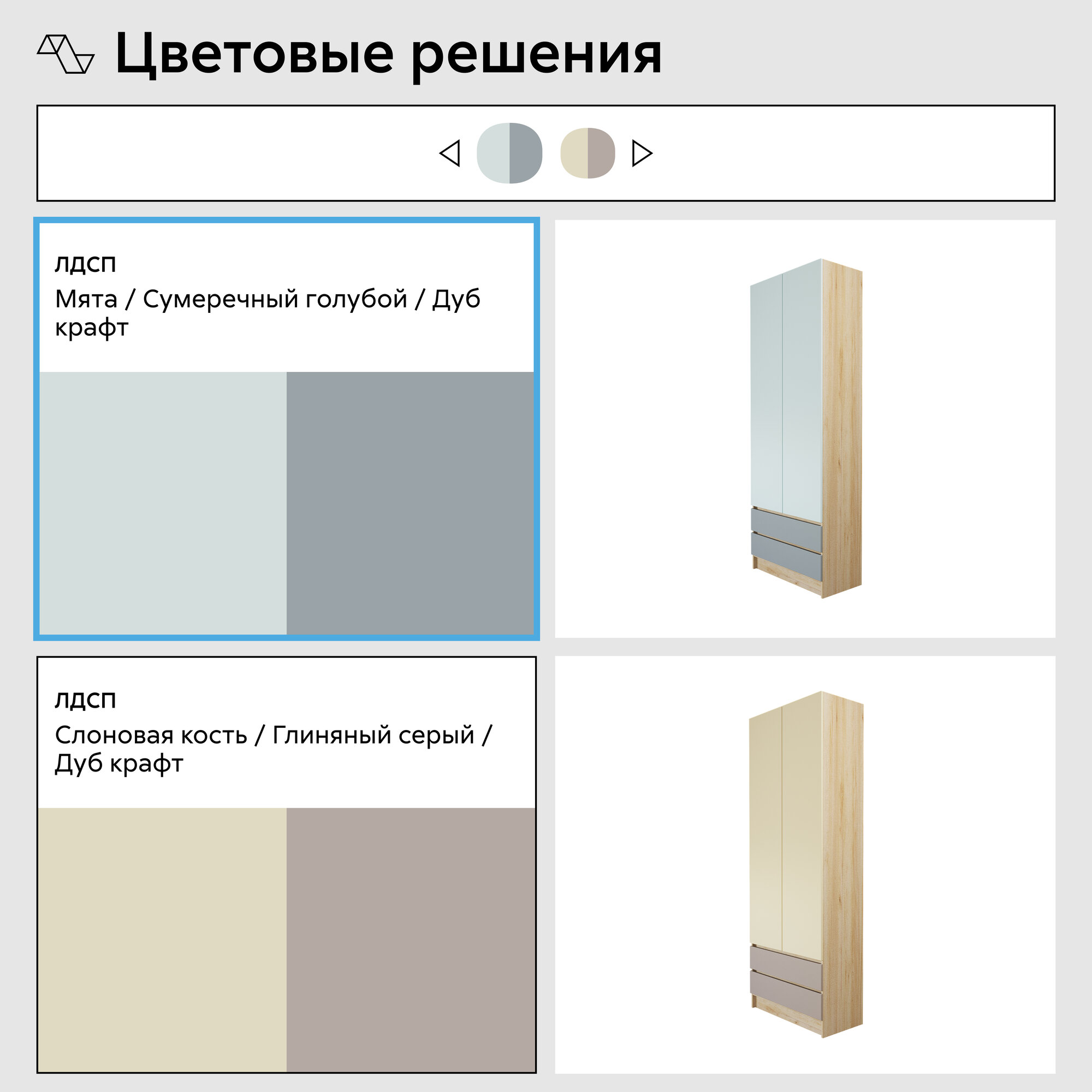 СохранитьШкаф распашной 2-х ств Челси Color, Мята/Сумеречный голубой/Дуб крафт, ЛДСП интересное: