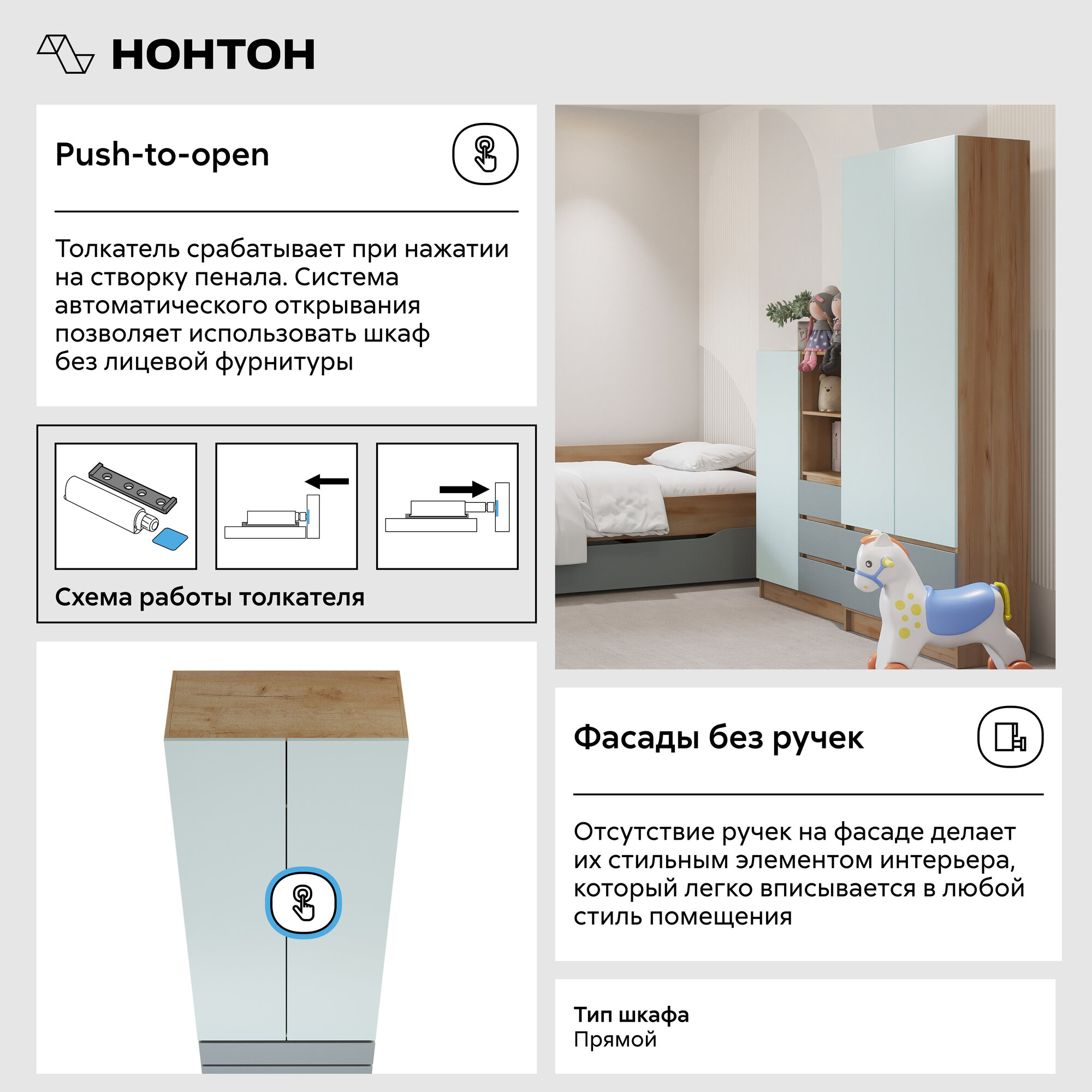 Купить Шкаф распашной 2-х ств Челси Color, Мята/Сумеречный голубой/Дуб крафт, ЛДСП