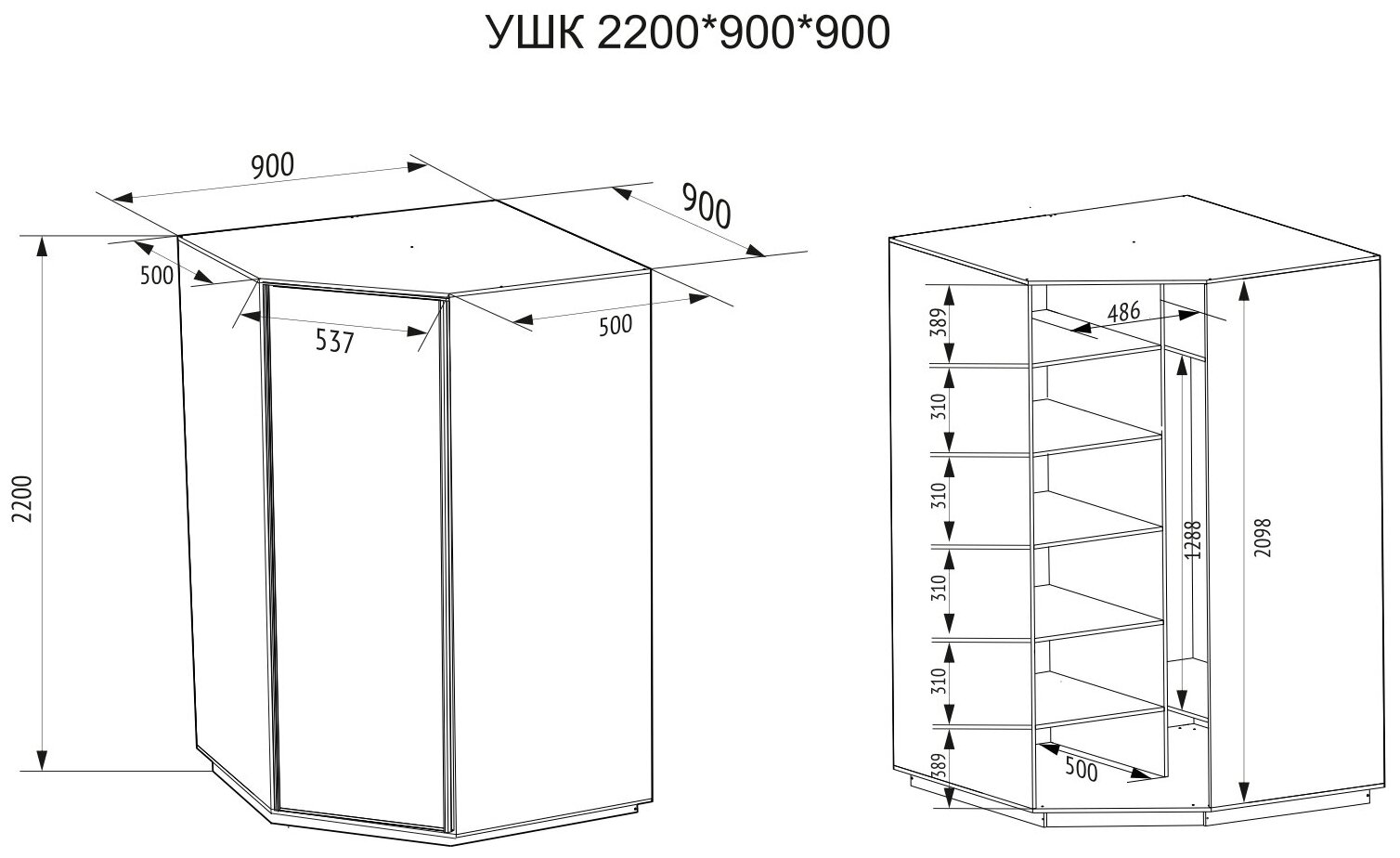 Угловой шкаф «Экспресс», 900×900×2200 мм, цвет ясень анкор светлый