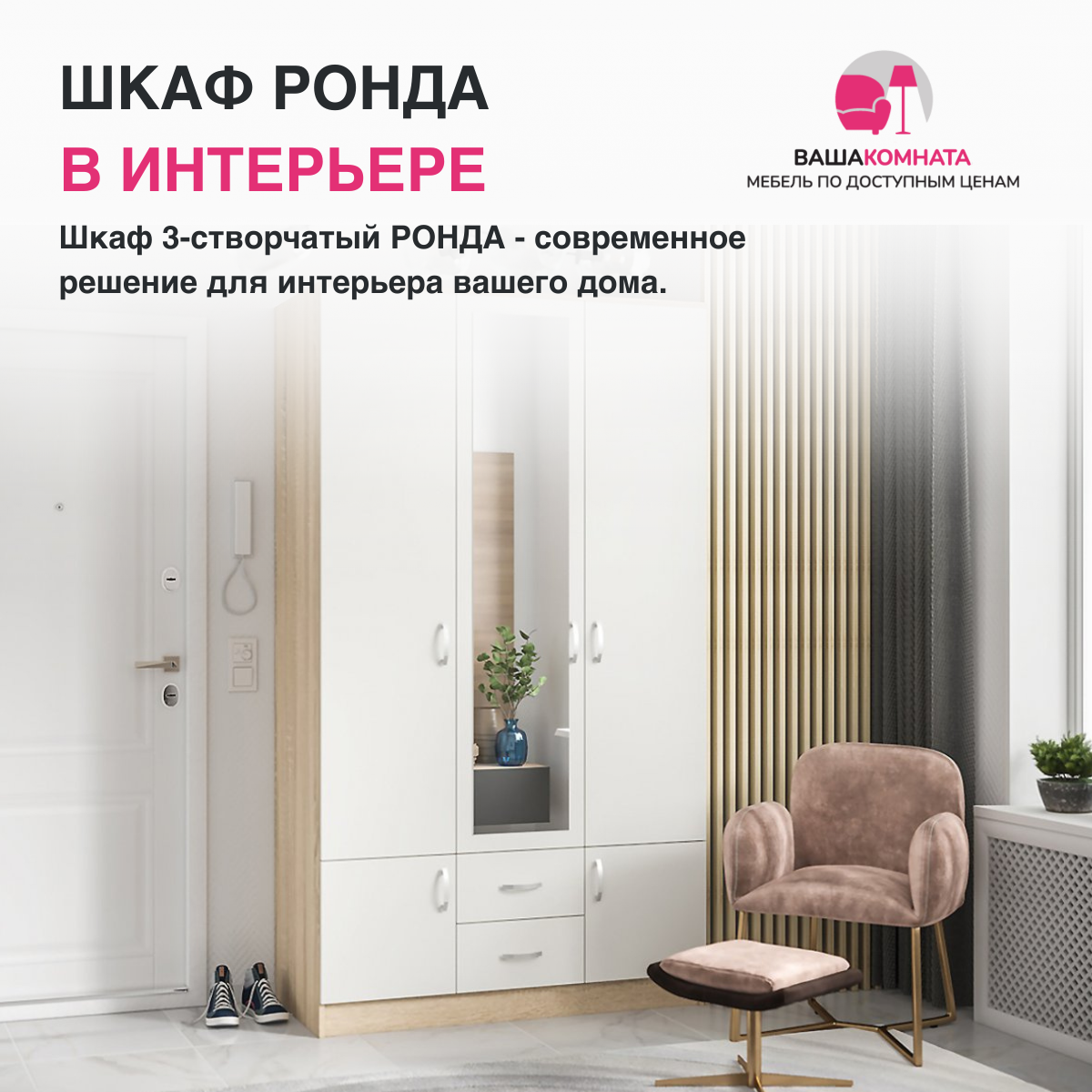 Мс для спальни Ронда ШК-3 белый/белый (Интерьер-Центр)