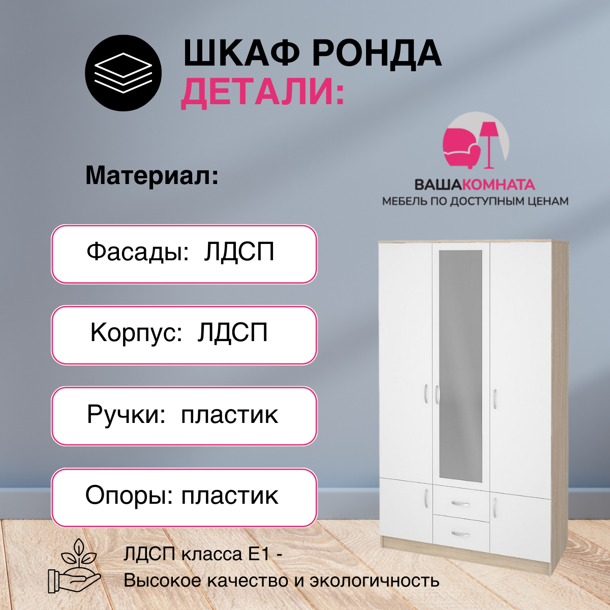 мс для спальни Ронда ШК-3 дуб сонома/белый