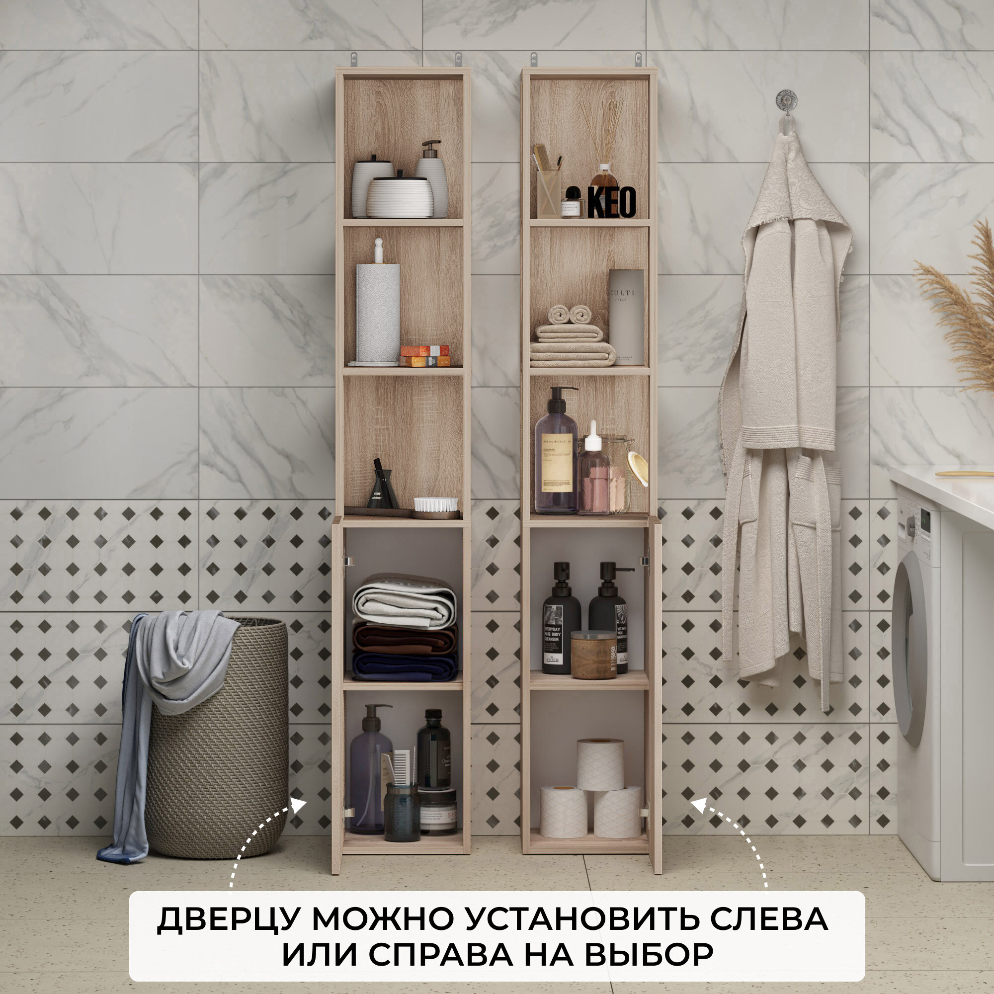 Шкаф стеллаж пенал высокий напольный Кео ШКН-268 дуб сонома в ванную прихожую спальню детскую 1755х319х300 мм