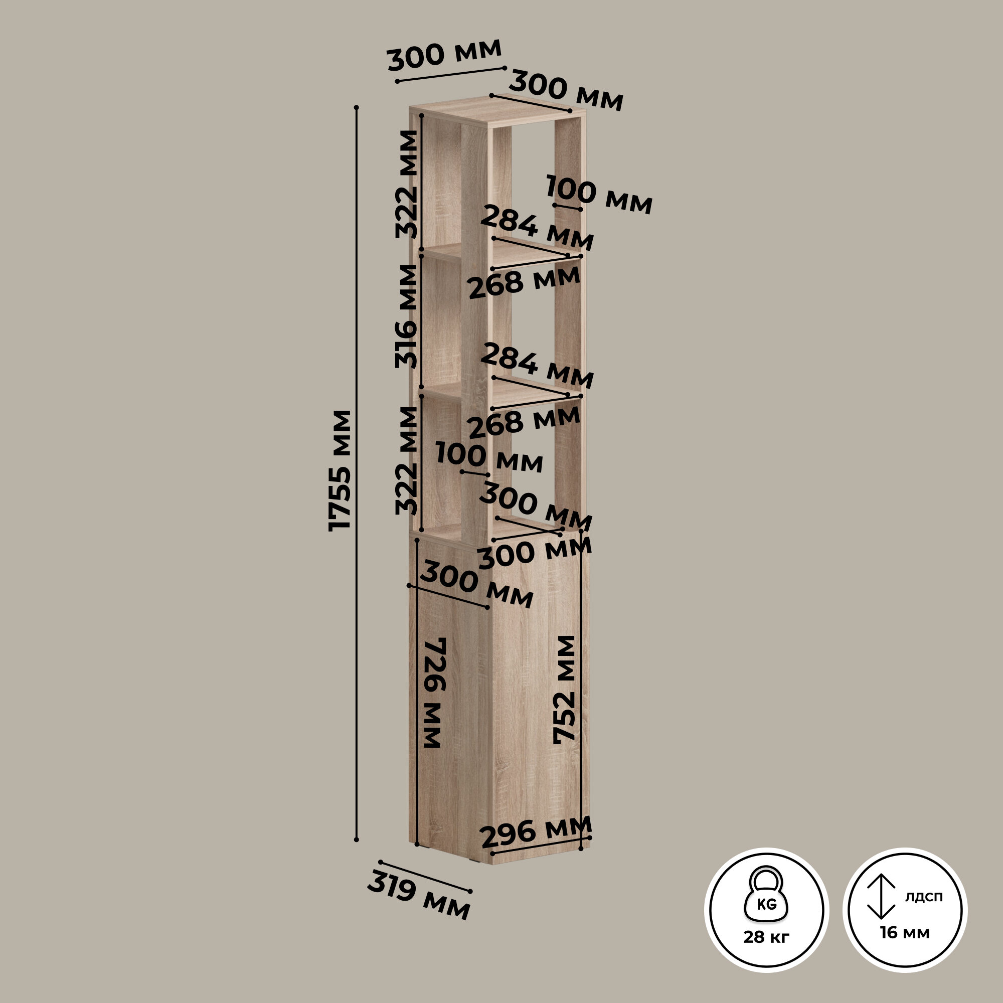СохранитьШкаф стеллаж пенал высокий напольный Кео ШКП-268 дуб сонома в ванную прихожую спальню детскую 1755х319х300 мм интересное: