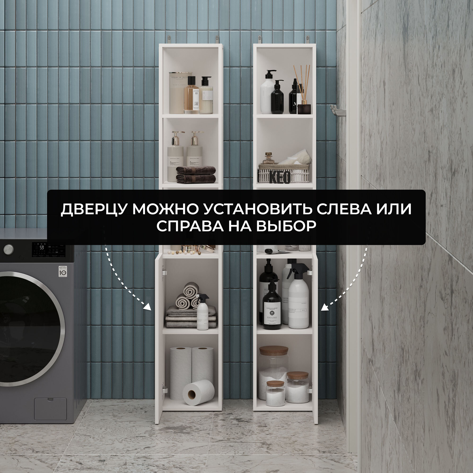 Шкаф пенал напольный с полками и дверцей стеллаж для ванной кухни прихожей балкона Кео СТМ-206 белый 1783х255х285 мм