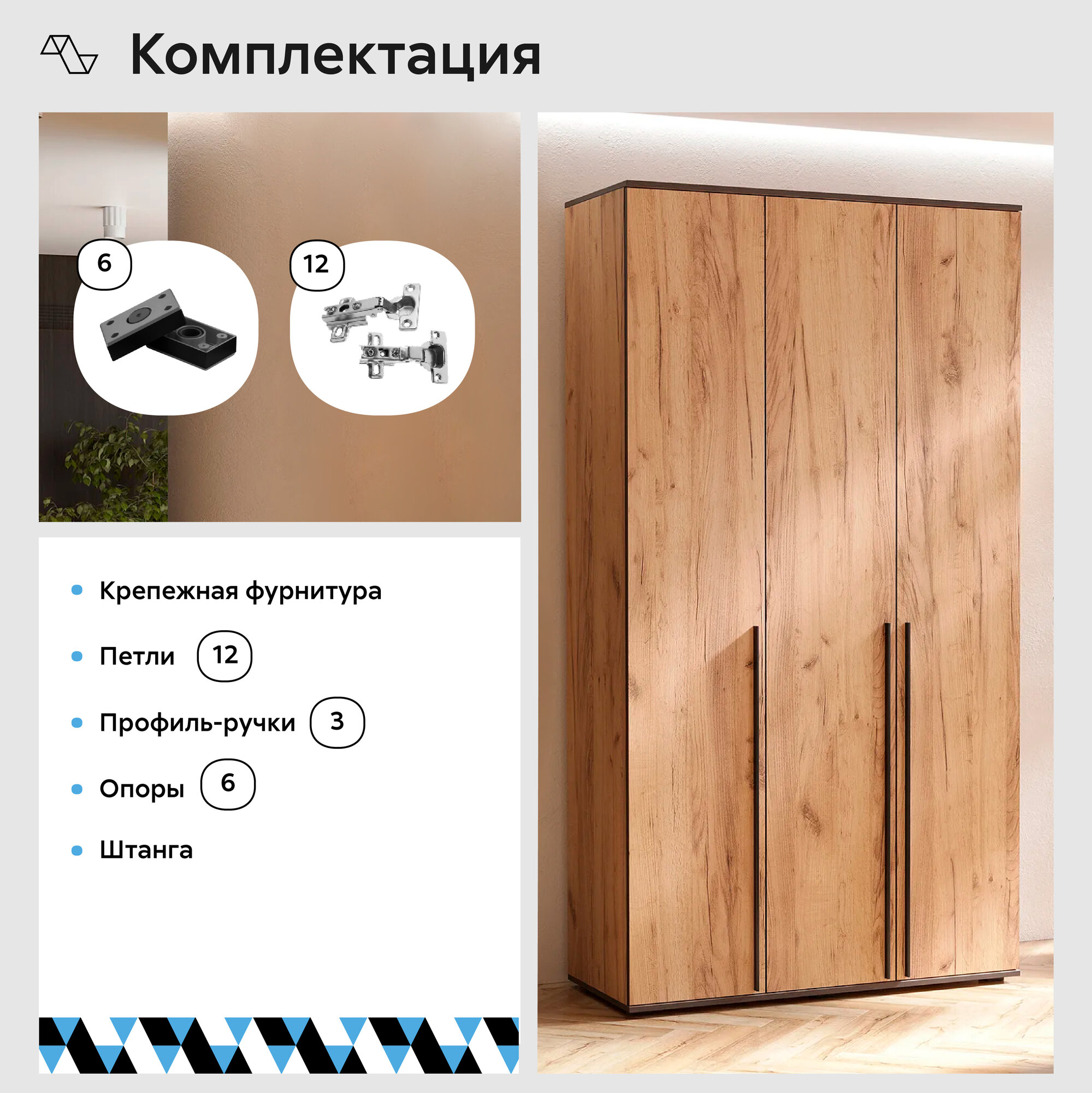 Шкаф МиФ Норд 3-х створчатый дуб крафт 120x51x223.6 см