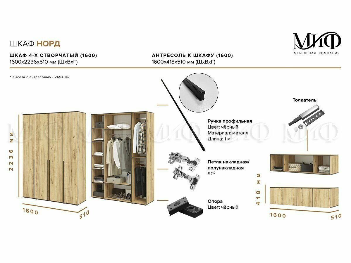 СохранитьШкаф 4-х ств. Норд 1600х2236х510 мм Крафт белый интересное: