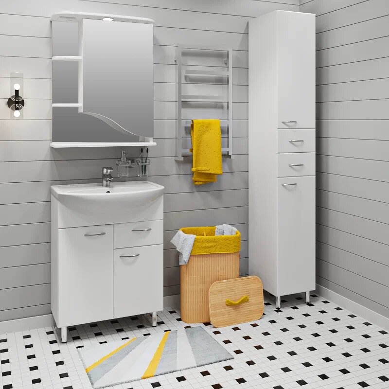 Шкаф в ванную с зеркалом Линда 60, с подсветкой, правый, белый